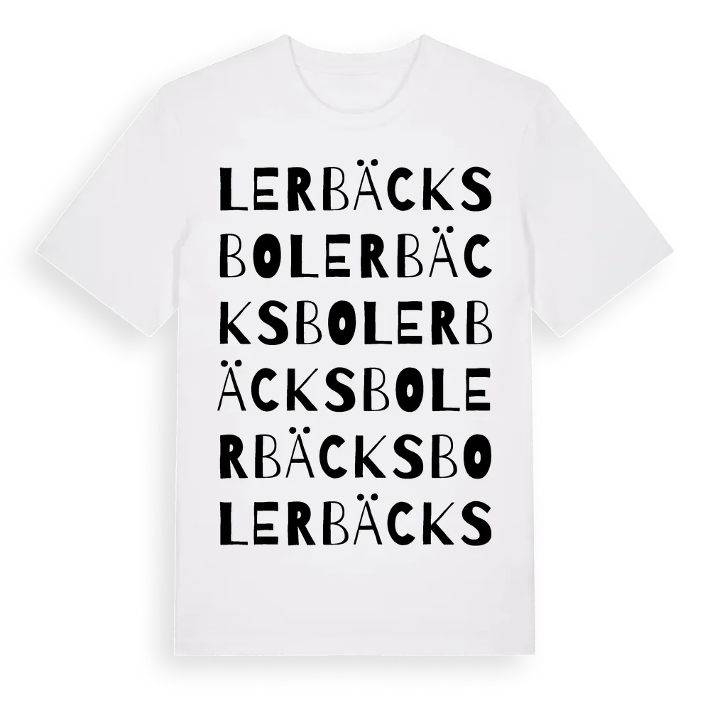 Lerbäcksbo ordlek t-shirt är inspirerad av byn Lerbäcksbo i Västra Götalands län, Sverige. Tröjan är designad för dig som har en speciell koppling till platsen – oavsett om du bor här, har rötterna här eller bara älskar Lerbäcksbo.