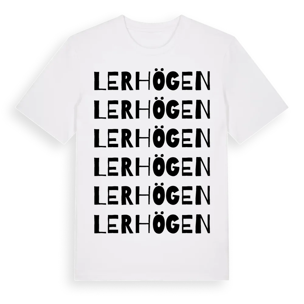Lerhögen ordlek t-shirt är inspirerad av Lerhögen i Västra Götalands län, Sverige. Tröjan är designad för dig som har en speciell koppling till platsen – oavsett om du bor här, har rötterna här eller bara älskar Lerhögen.