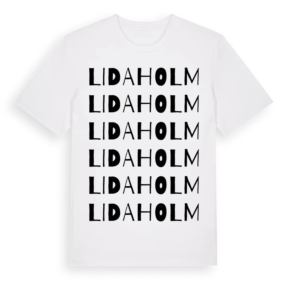 En ordlek byggd på Lidaholms namn. Subtilt och klurig – ett motiv som bara de som verkligen känner platsen fullt ut förstår. Premium bomull, unisex – från Lidaholm i Västra Götalands län.