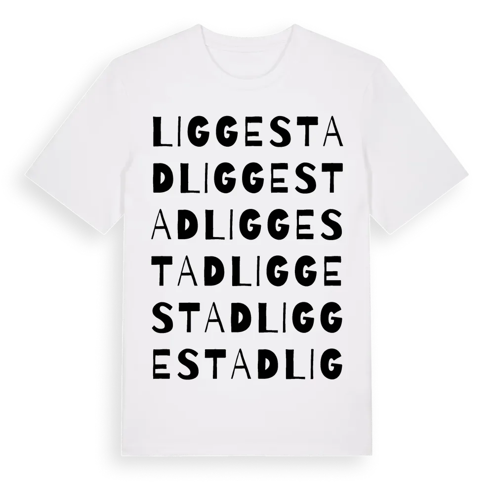 Liggestad ordlek t-shirt är inspirerad av byn Liggestad i Västra Götalands län, Sverige. Tröjan är designad för dig som har en speciell koppling till platsen – oavsett om du bor här, har rötterna här eller bara älskar Liggestad.