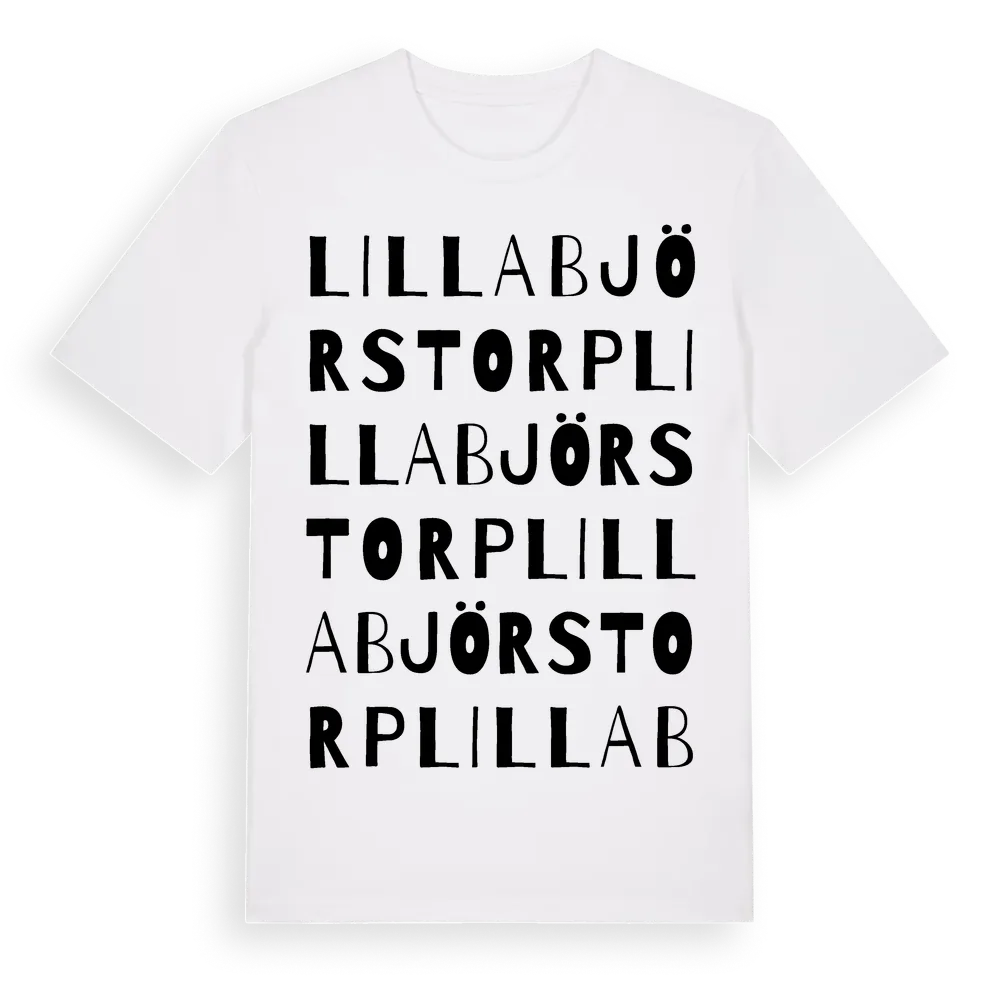 Lilla Björstorp ordlek t-shirt är inspirerad av Lilla Björstorp i Västra Götalands län, Sverige. Tröjan är designad för dig som har en speciell koppling till platsen – oavsett om du bor här, har rötterna här eller bara älskar Lilla Björstorp.
