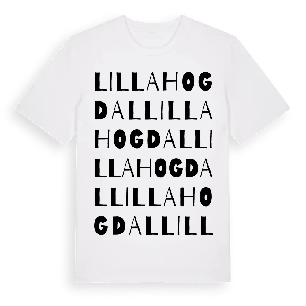 Lilla Hogdal ordlek t-shirt är inspirerad av Lilla Hogdal i Västra Götalands län, Sverige. Tröjan är designad för dig som har en speciell koppling till platsen – oavsett om du bor här, har rötterna här eller bara älskar Lilla Hogdal.