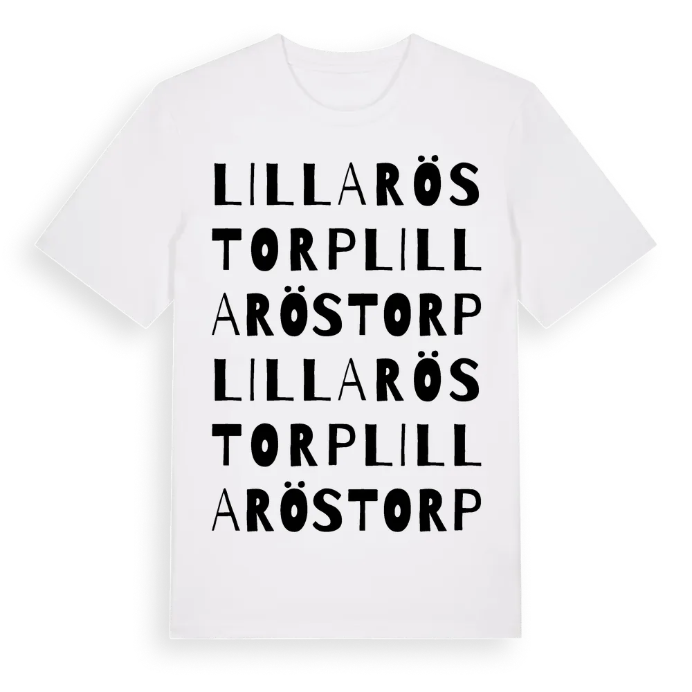 Lilla Röstorp ordlek t-shirt är inspirerad av Lilla Röstorp i Västra Götalands län, Sverige. Tröjan är designad för dig som har en speciell koppling till platsen – oavsett om du bor här, har rötterna här eller bara älskar Lilla Röstorp.