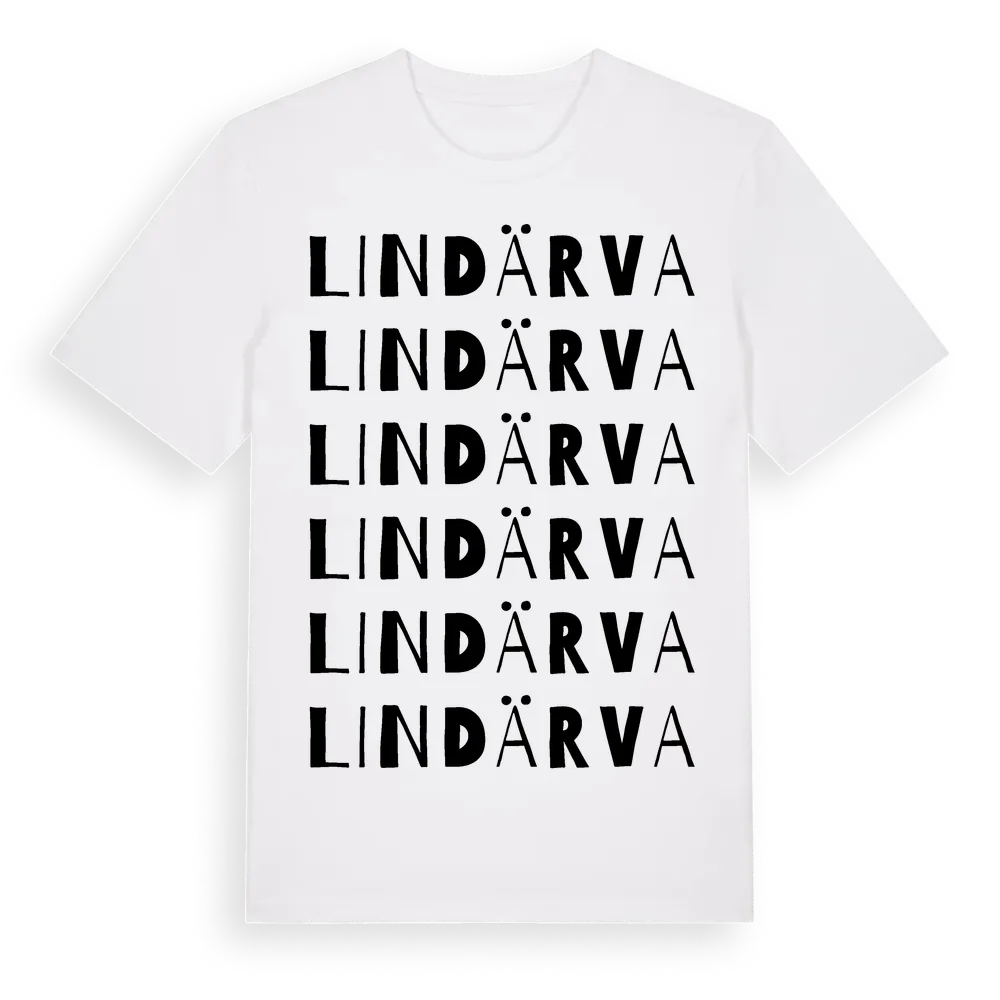 Lindärva ordlek t-shirt är inspirerad av byn Lindärva i Västra Götalands län, Sverige. Tröjan är designad för dig som har en speciell koppling till platsen – oavsett om du bor här, har rötterna här eller bara älskar Lindärva.