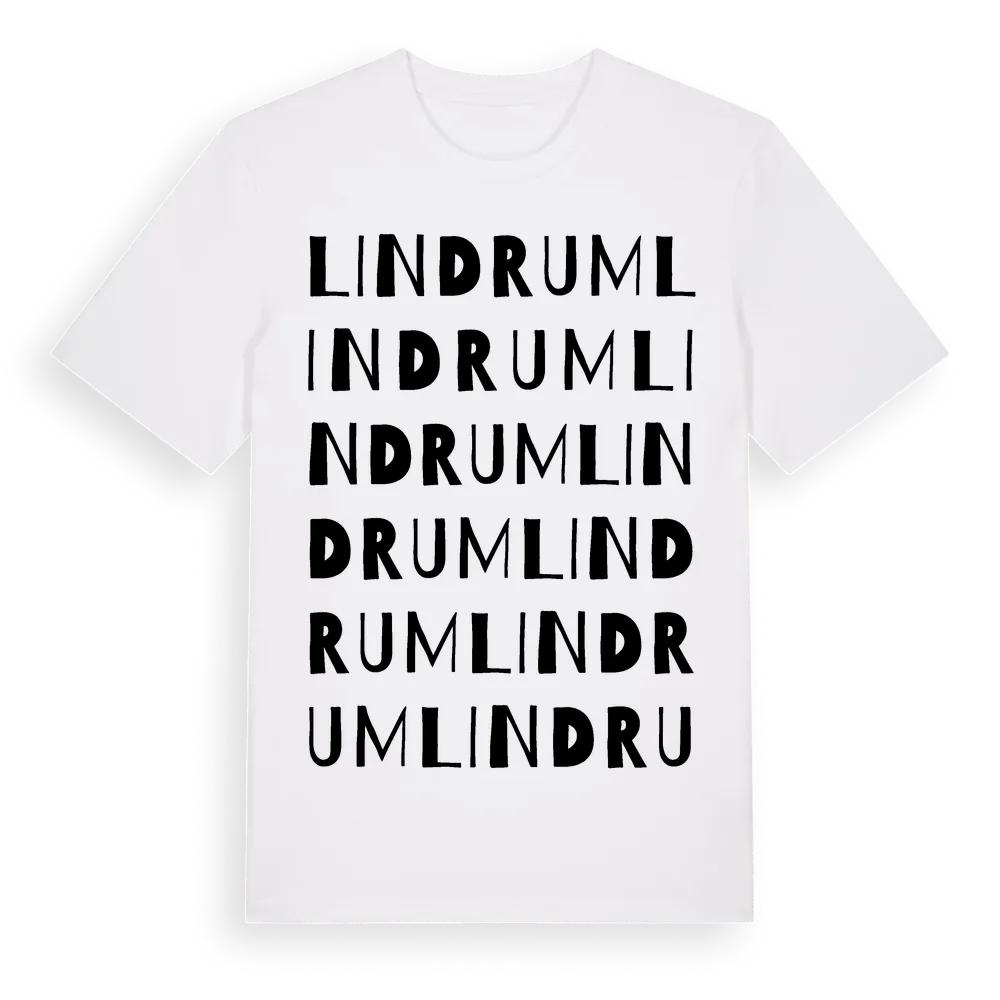 Lindrum ordlek t-shirt är inspirerad av byn Lindrum i Västra Götalands län, Sverige. Tröjan är designad för dig som har en speciell koppling till platsen – oavsett om du bor här, har rötterna här eller bara älskar Lindrum.