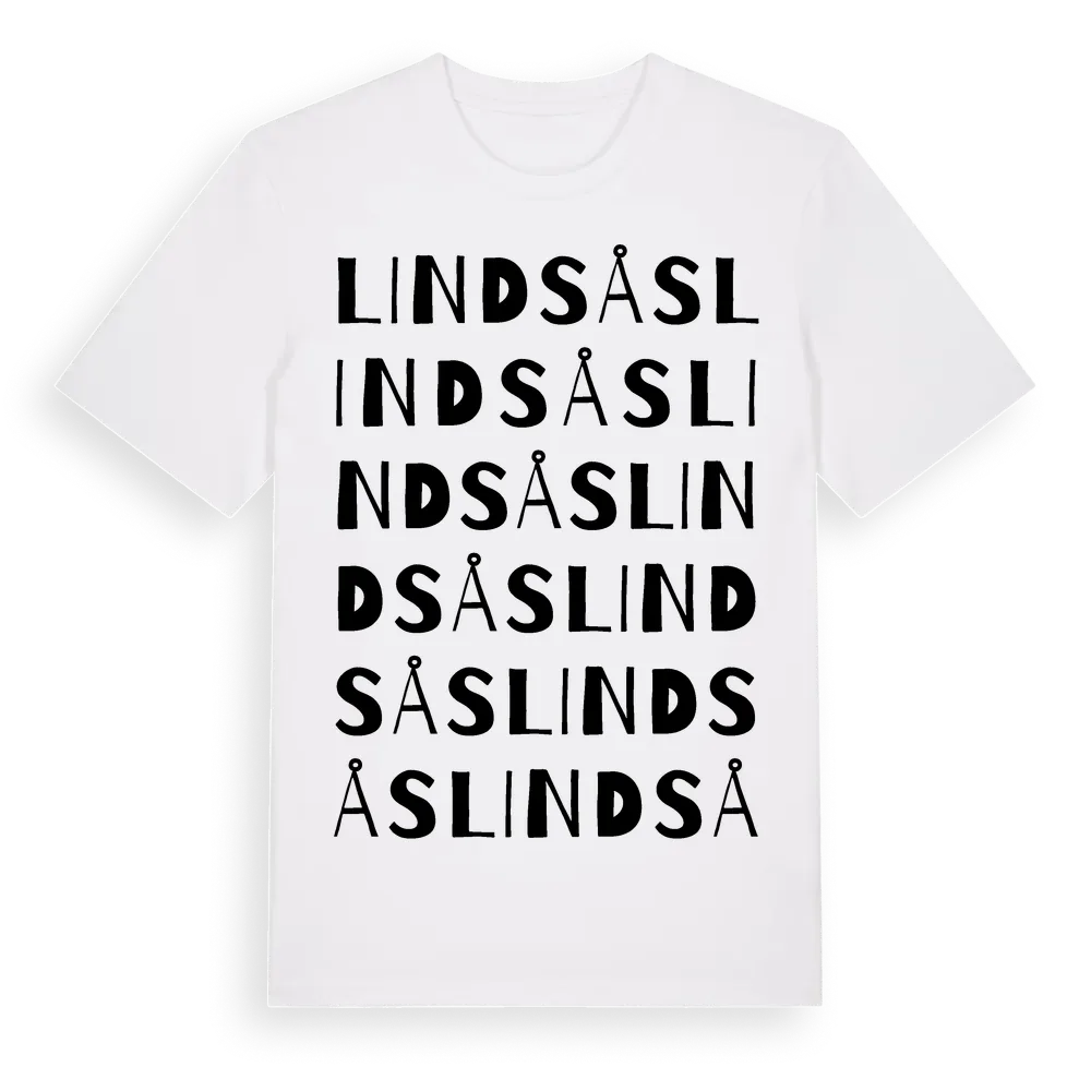 Lindsås ordlek t-shirt är inspirerad av byn Lindsås i Västra Götalands län, Sverige. Tröjan är designad för dig som har en speciell koppling till platsen – oavsett om du bor här, har rötterna här eller bara älskar Lindsås.