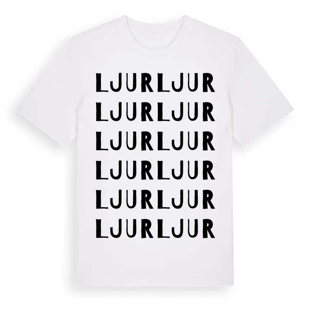 Ljur ordlek t-shirt är inspirerad av byn Ljur i Västra Götalands län, Sverige. Tröjan är designad för dig som har en speciell koppling till platsen – oavsett om du bor här, har rötterna här eller bara älskar Ljur.
