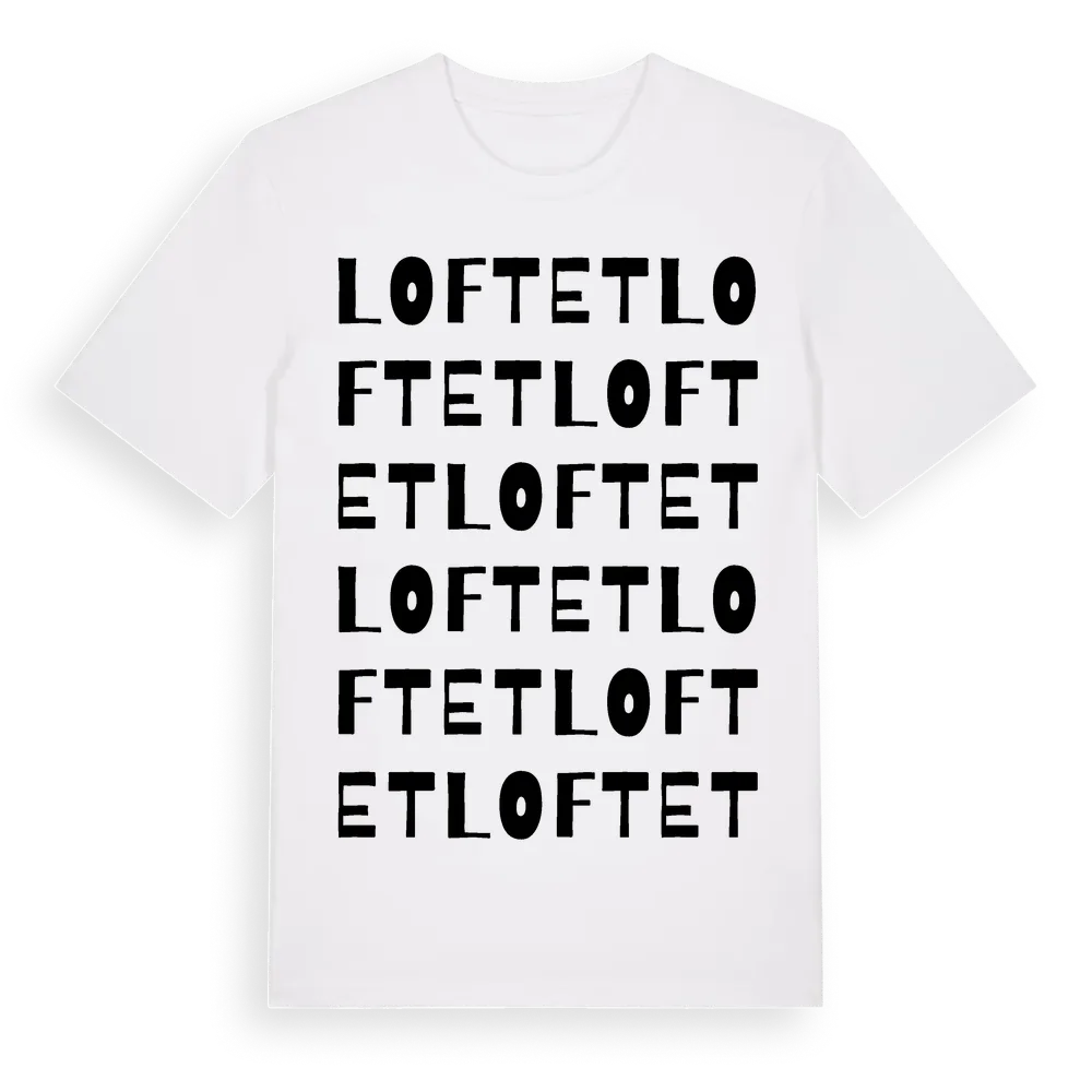 Loftet ordlek t-shirt är inspirerad av Loftet i Västra Götalands län, Sverige. Tröjan är designad för dig som har en speciell koppling till platsen – oavsett om du bor här, har rötterna här eller bara älskar Loftet.