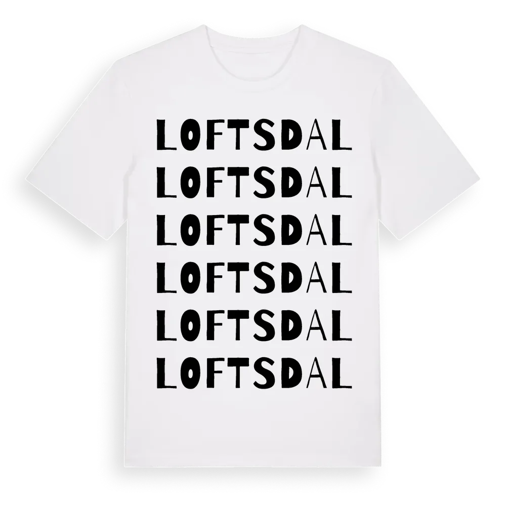 Loftsdal ordlek t-shirt är inspirerad av byn Loftsdal i Västra Götalands län, Sverige. Tröjan är designad för dig som har en speciell koppling till platsen – oavsett om du bor här, har rötterna här eller bara älskar Loftsdal.