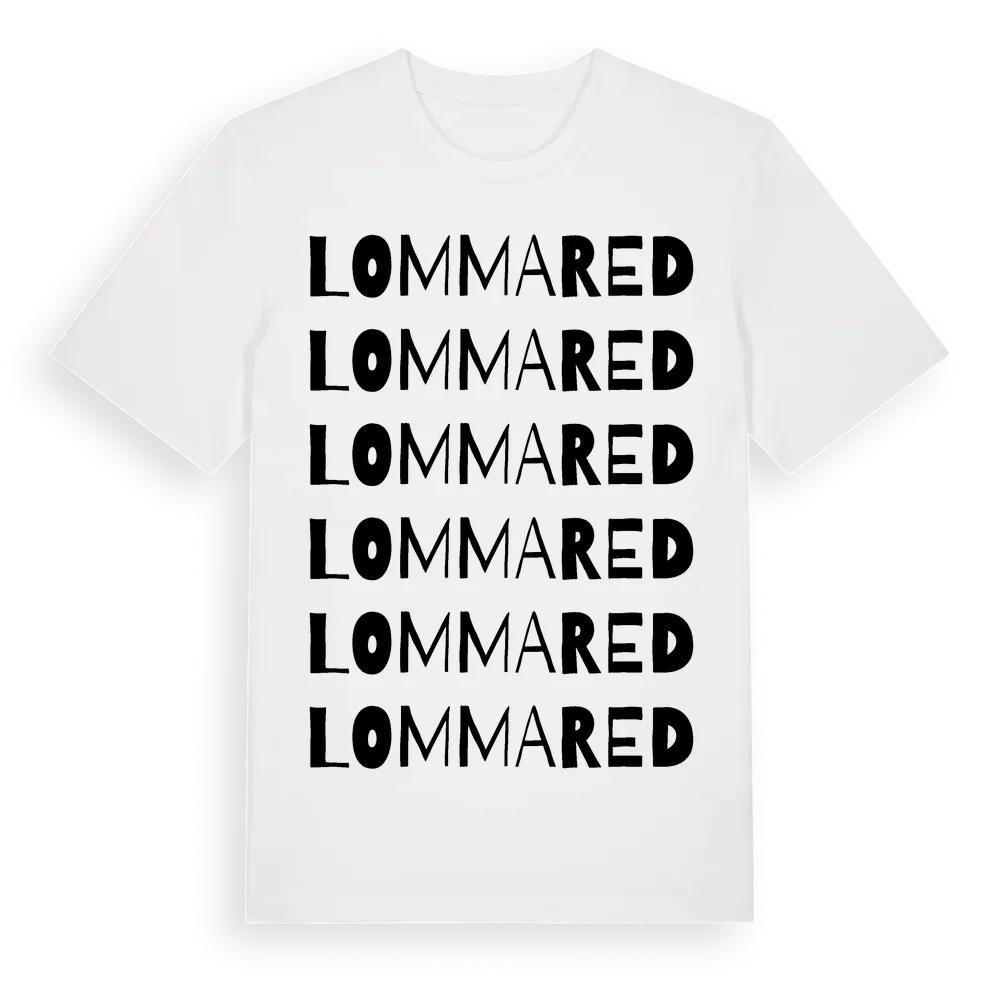 Lommared ordlek t-shirt är inspirerad av byn Lommared i Västra Götalands län, Sverige. Tröjan är designad för dig som har en speciell koppling till platsen – oavsett om du bor här, har rötterna här eller bara älskar Lommared.