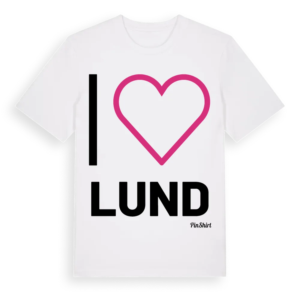 Det klassiska "I ❤ Lund"-motivet i stort format som täcker hela bröstet. För dig som vill visa kärleken till Lund på riktigt. Premium bomull, unisex – från Lund i Västra Götalands län.