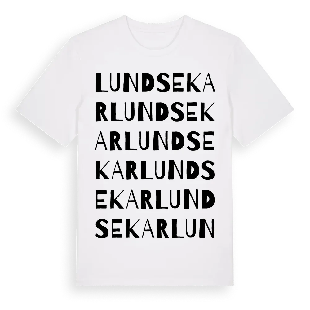 Lunds Ekar ordlek t-shirt är inspirerad av Lunds Ekar i Västra Götalands län, Sverige. Tröjan är designad för dig som har en speciell koppling till platsen – oavsett om du bor här, har rötterna här eller bara älskar Lunds Ekar.