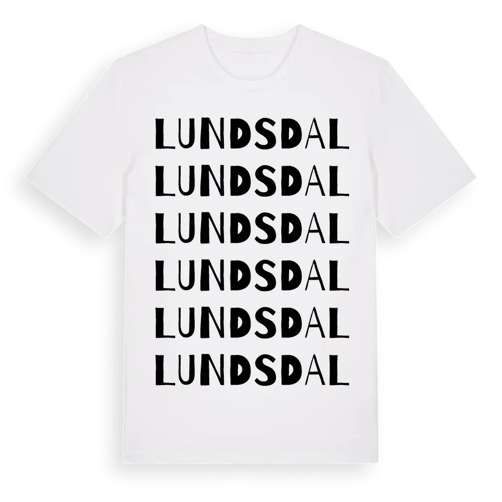 Lundsdal ordlek t-shirt är inspirerad av Lundsdal i Västra Götalands län, Sverige. Tröjan är designad för dig som har en speciell koppling till platsen – oavsett om du bor här, har rötterna här eller bara älskar Lundsdal.