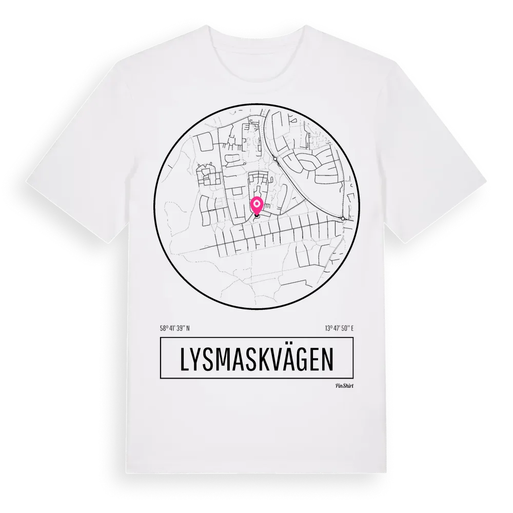 Lysmaskvägen t-shirt är inspirerad av stadsdelen Lysmaskvägen i Västra Götalands län, Sverige. Tröjan är designad för dig som har en speciell koppling till platsen – oavsett om du bor här, har rötterna här eller bara älskar Lysmaskvägen.