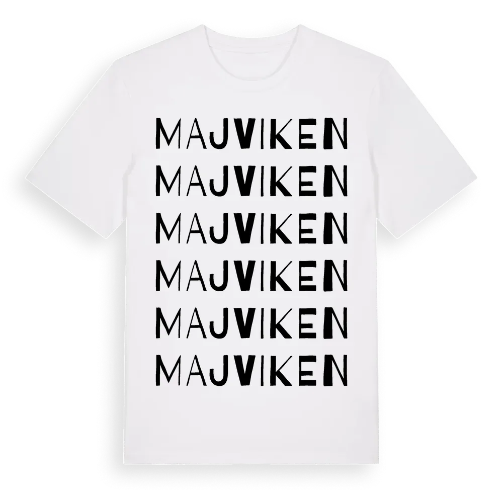 Majviken ordlek t-shirt är inspirerad av Majviken i Västra Götalands län, Sverige. Tröjan är designad för dig som har en speciell koppling till platsen – oavsett om du bor här, har rötterna här eller bara älskar Majviken.