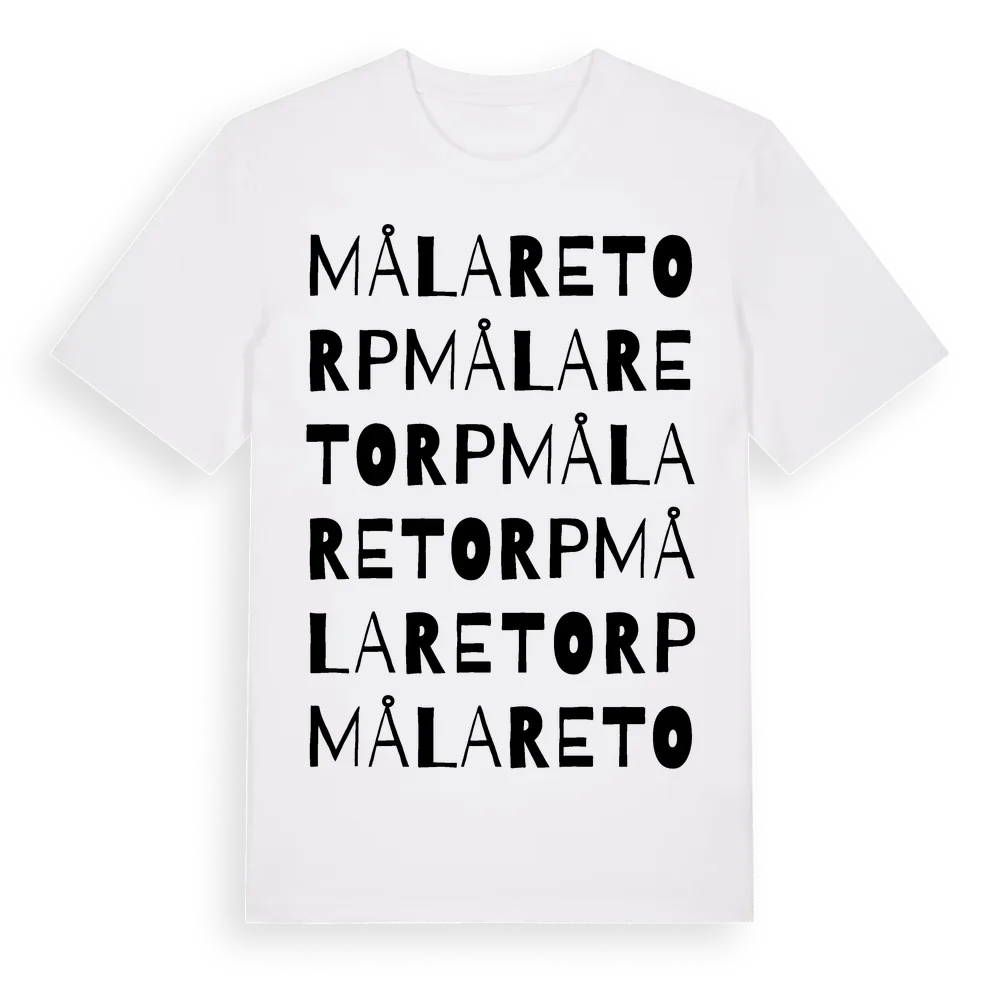 Målaretorp ordlek t-shirt är inspirerad av Målaretorp i Västra Götalands län, Sverige. Tröjan är designad för dig som har en speciell koppling till platsen – oavsett om du bor här, har rötterna här eller bara älskar Målaretorp.