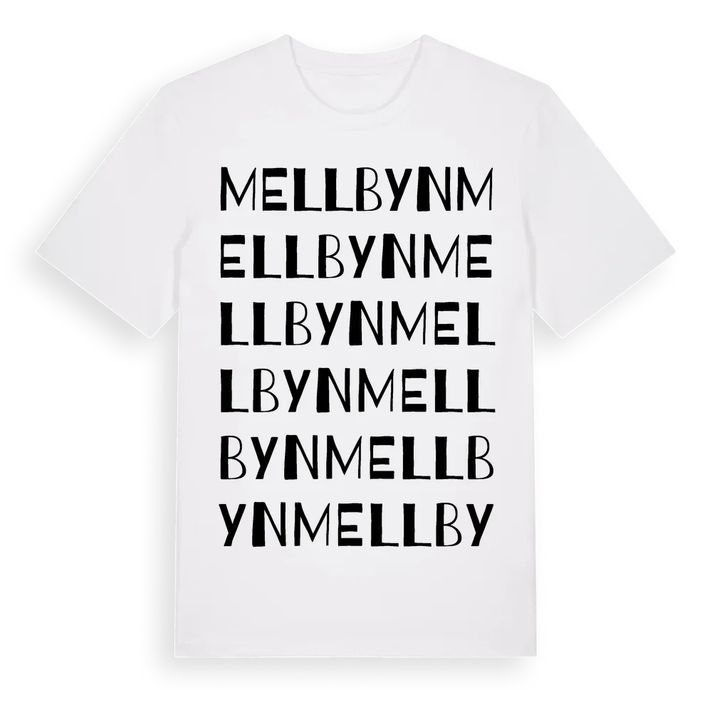 Mellbyn ordlek t-shirt är inspirerad av Mellbyn i Västra Götalands län, Sverige. Tröjan är designad för dig som har en speciell koppling till platsen – oavsett om du bor här, har rötterna här eller bara älskar Mellbyn.