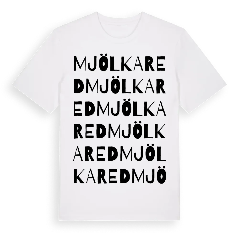 Mjölkared ordlek t-shirt är inspirerad av Mjölkared i Västra Götalands län, Sverige. Tröjan är designad för dig som har en speciell koppling till platsen – oavsett om du bor här, har rötterna här eller bara älskar Mjölkared.