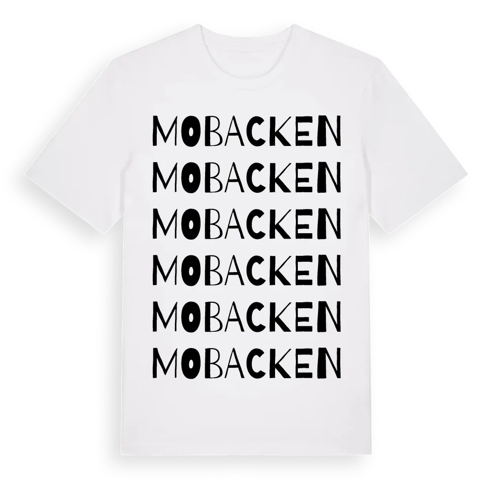 En ordlek byggd på Mobackens namn. Subtilt och klurig – ett motiv som bara de som verkligen känner platsen fullt ut förstår. Premium bomull, unisex – från Mobacken i Västra Götalands län.