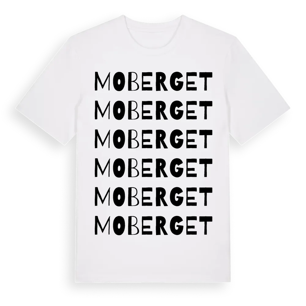 En ordlek byggd på Mobergets namn. Subtilt och klurig – ett motiv som bara de som verkligen känner platsen fullt ut förstår. Premium bomull, unisex – från Moberget i Västra Götalands län.