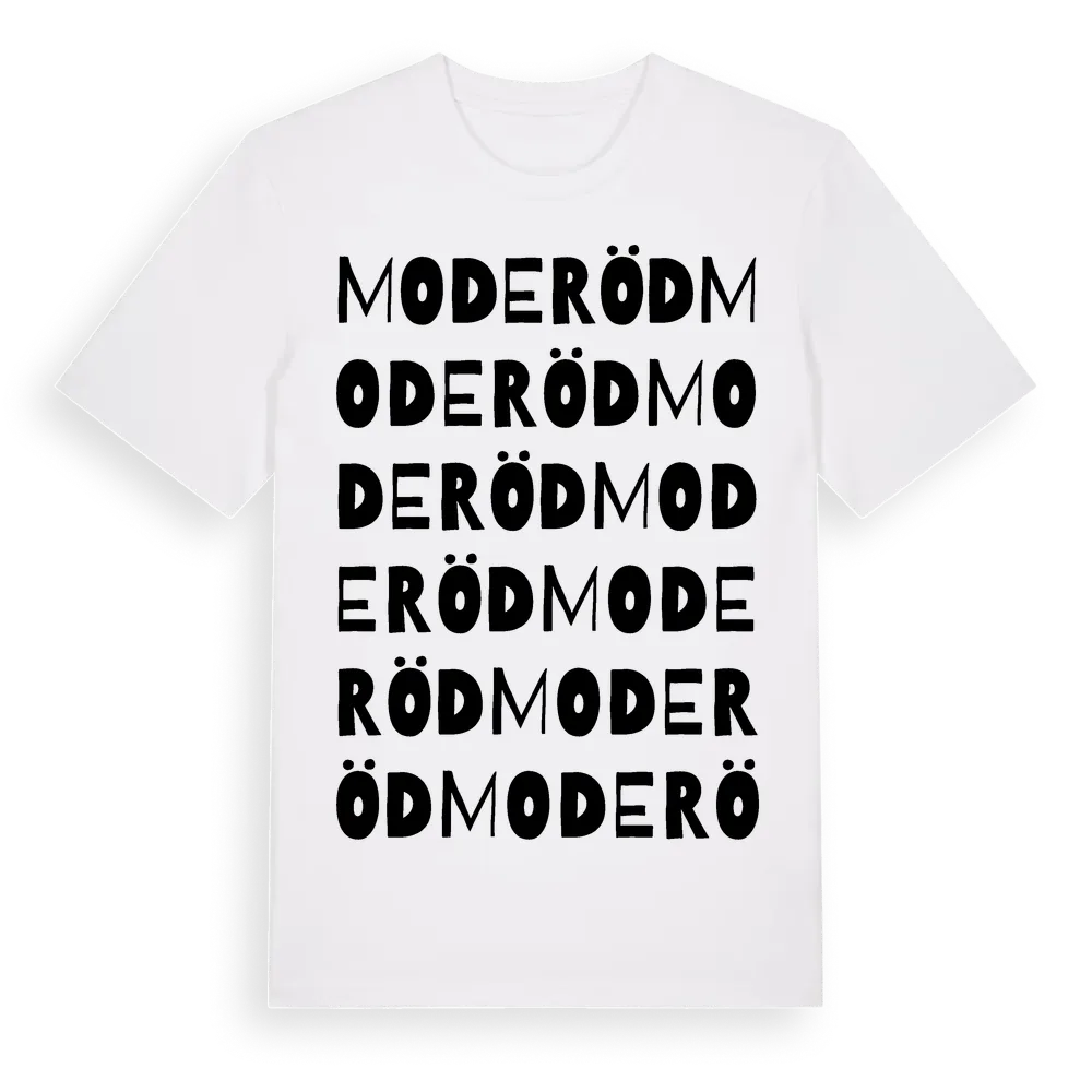 Moderöd ordlek t-shirt är inspirerad av Moderöd i Västra Götalands län, Sverige. Tröjan är designad för dig som har en speciell koppling till platsen – oavsett om du bor här, har rötterna här eller bara älskar Moderöd.