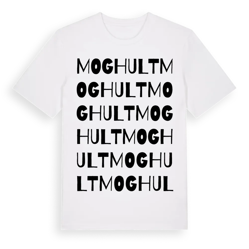 Moghult ordlek t-shirt är inspirerad av byn Moghult i Västra Götalands län, Sverige. Tröjan är designad för dig som har en speciell koppling till platsen – oavsett om du bor här, har rötterna här eller bara älskar Moghult.
