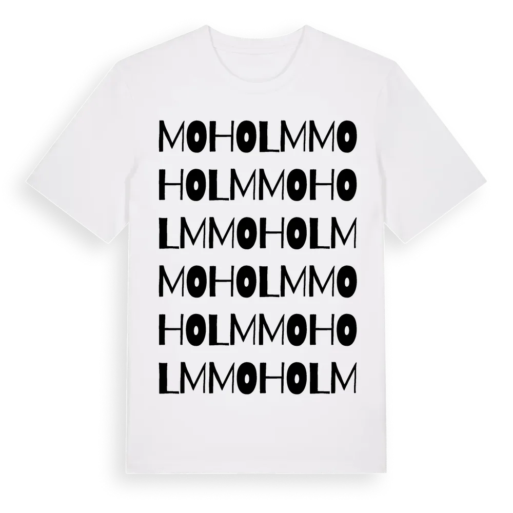 En ordlek byggd på Moholms namn. Subtilt och klurig – ett motiv som bara de som verkligen känner platsen fullt ut förstår. Premium bomull, unisex – från Moholm i Västra Götalands län.