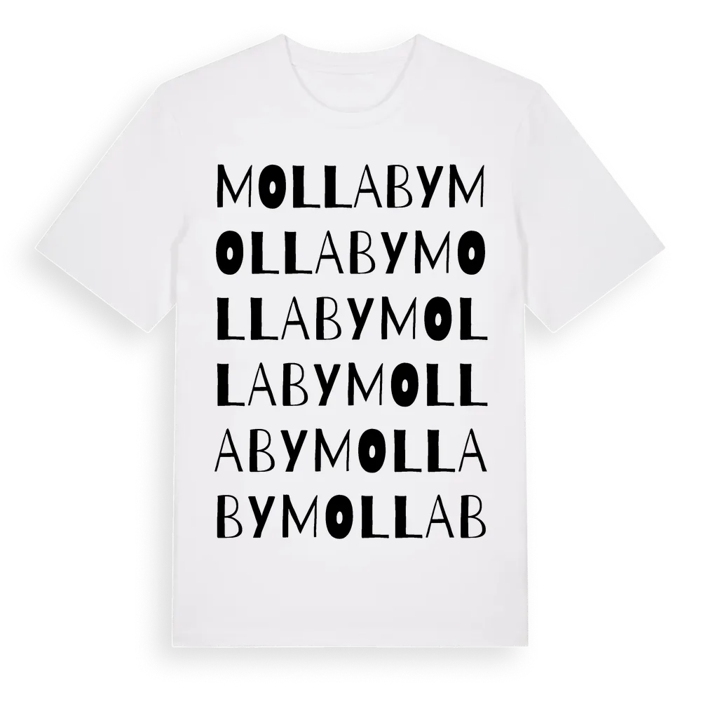 Molla By ordlek t-shirt är inspirerad av byn Molla By i Västra Götalands län, Sverige. Tröjan är designad för dig som har en speciell koppling till platsen – oavsett om du bor här, har rötterna här eller bara älskar Molla By.