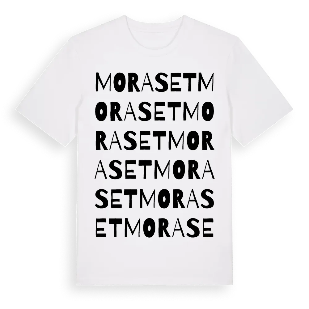 Moraset ordlek t-shirt är inspirerad av Moraset i Västra Götalands län, Sverige. Tröjan är designad för dig som har en speciell koppling till platsen – oavsett om du bor här, har rötterna här eller bara älskar Moraset.
