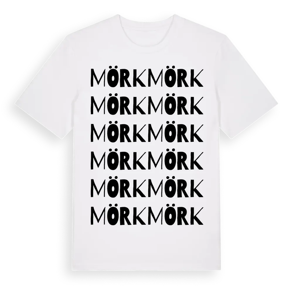 Mörk ordlek t-shirt är inspirerad av byn Mörk i Västra Götalands län, Sverige. Tröjan är designad för dig som har en speciell koppling till platsen – oavsett om du bor här, har rötterna här eller bara älskar Mörk.