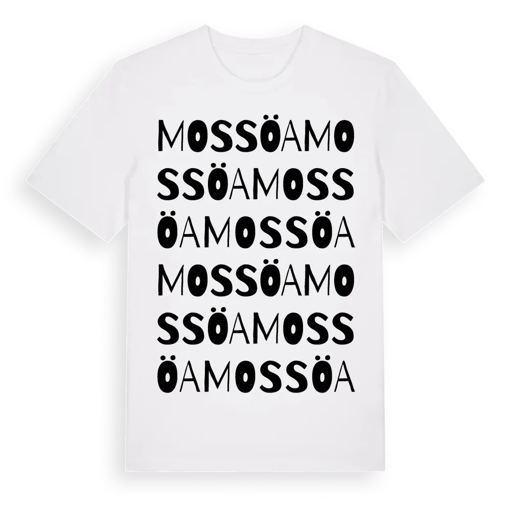 Mossöa ordlek t-shirt är inspirerad av Mossöa i Västra Götalands län, Sverige. Tröjan är designad för dig som har en speciell koppling till platsen – oavsett om du bor här, har rötterna här eller bara älskar Mossöa.