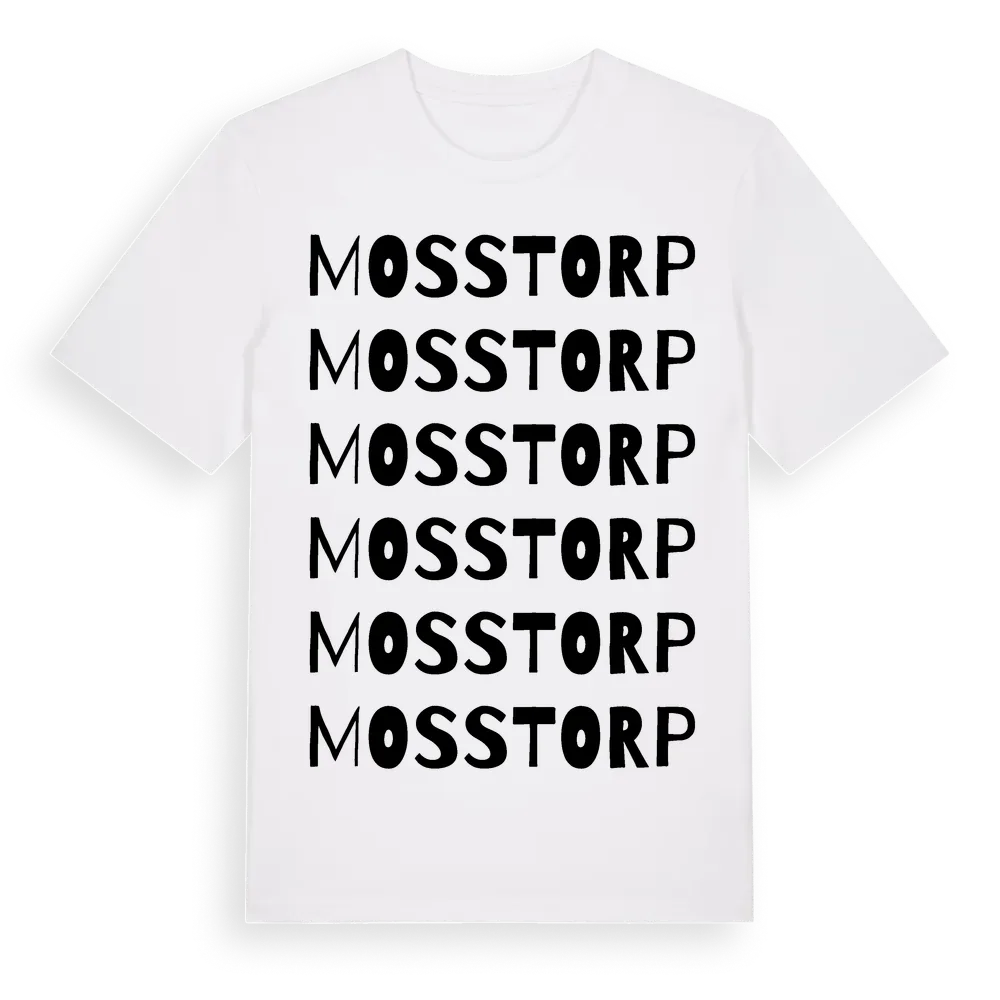 Mosstorp ordlek t-shirt är inspirerad av Mosstorp i Västra Götalands län, Sverige. Tröjan är designad för dig som har en speciell koppling till platsen – oavsett om du bor här, har rötterna här eller bara älskar Mosstorp.