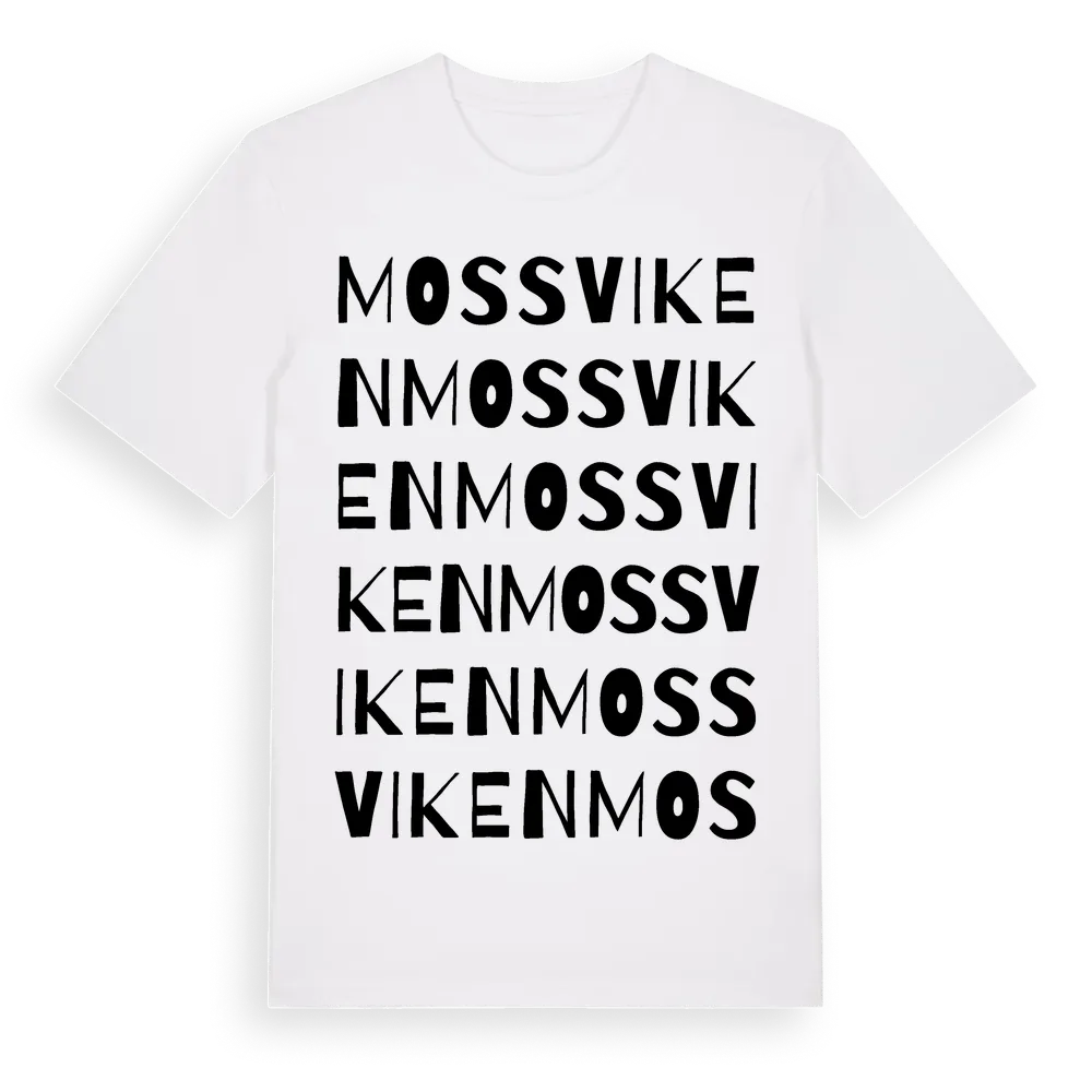 Mossviken ordlek t-shirt är inspirerad av byn Mossviken i Västra Götalands län, Sverige. Tröjan är designad för dig som har en speciell koppling till platsen – oavsett om du bor här, har rötterna här eller bara älskar Mossviken.