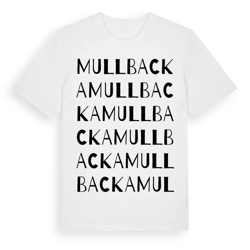 En ordlek byggd på Mullbackas namn. Subtilt och klurig – ett motiv som bara de som verkligen känner platsen fullt ut förstår. Premium bomull, unisex – från byn Mullbacka i Västra Götalands län.