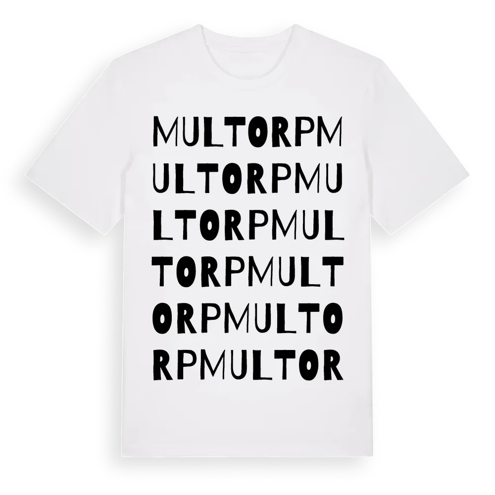 En ordlek byggd på Multorps namn. Subtilt och klurig – ett motiv som bara de som verkligen känner platsen fullt ut förstår. Premium bomull, unisex – från Multorp i Västra Götalands län.