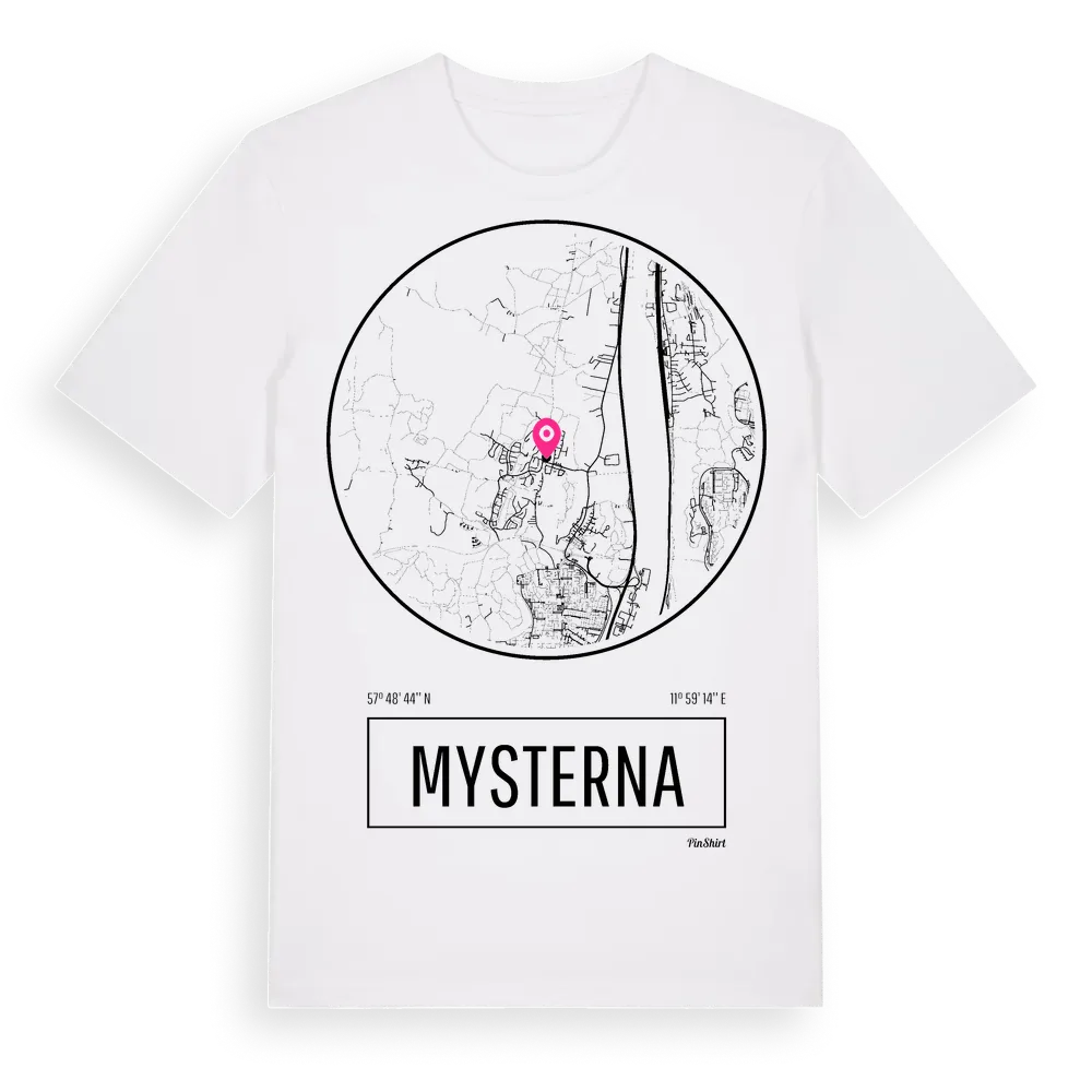Mysterna t-shirt är inspirerad av byn Mysterna i Västra Götalands län, Sverige. Tröjan är designad för dig som har en speciell koppling till platsen – oavsett om du bor här, har rötterna här eller bara älskar Mysterna.