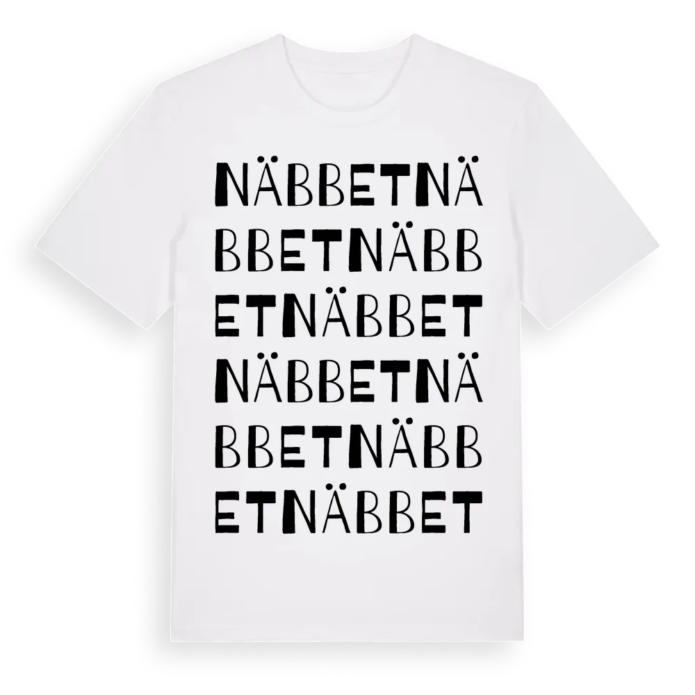 Näbbet ordlek t-shirt är inspirerad av Näbbet i Västra Götalands län, Sverige. Tröjan är designad för dig som har en speciell koppling till platsen – oavsett om du bor här, har rötterna här eller bara älskar Näbbet.