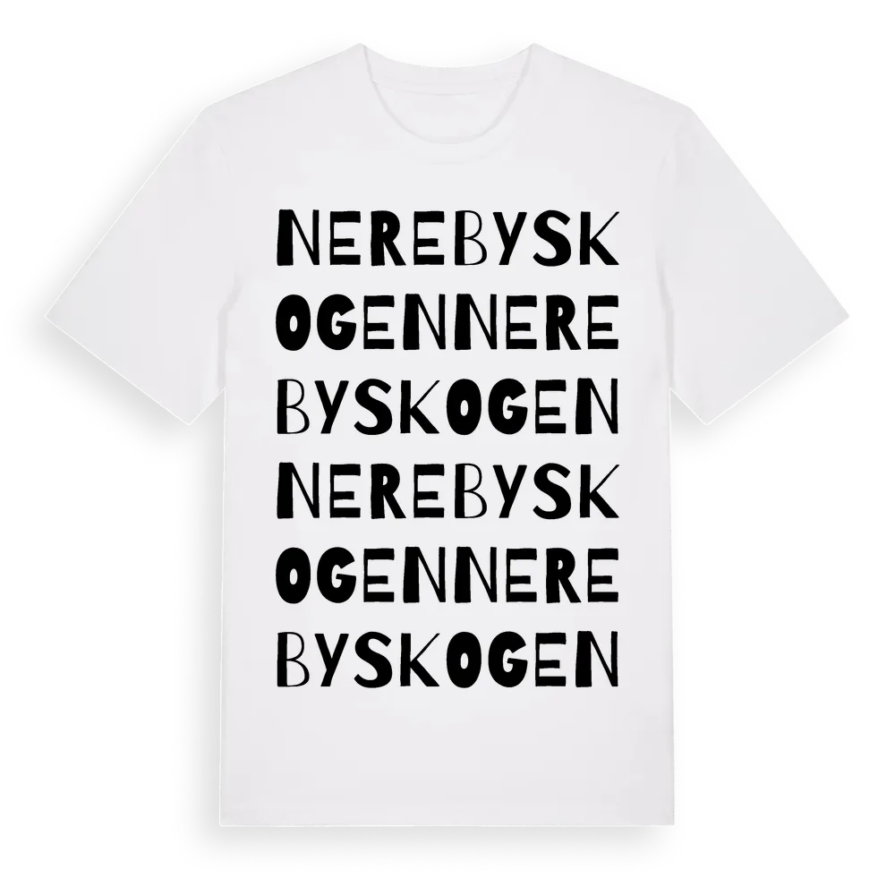 Nerebyskogen ordlek t-shirt är inspirerad av byn Nerebyskogen i Västra Götalands län, Sverige. Tröjan är designad för dig som har en speciell koppling till platsen – oavsett om du bor här, har rötterna här eller bara älskar Nerebyskogen.