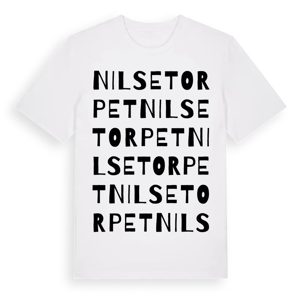Nilsetorpet ordlek t-shirt är inspirerad av Nilsetorpet i Västra Götalands län, Sverige. Tröjan är designad för dig som har en speciell koppling till platsen – oavsett om du bor här, har rötterna här eller bara älskar Nilsetorpet.