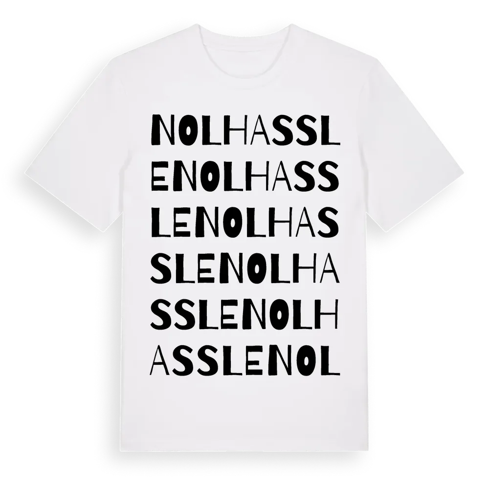 En ordlek byggd på Nolhassles namn. Subtilt och klurig – ett motiv som bara de som verkligen känner platsen fullt ut förstår. Premium bomull, unisex – från byn Nolhassle i Västra Götalands län.