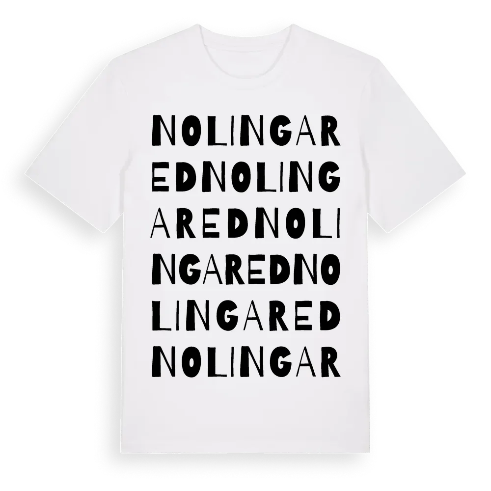 Nolingared ordlek t-shirt är inspirerad av stadsdelen Nolingared i Västra Götalands län, Sverige. Tröjan är designad för dig som har en speciell koppling till platsen – oavsett om du bor här, har rötterna här eller bara älskar Nolingared.