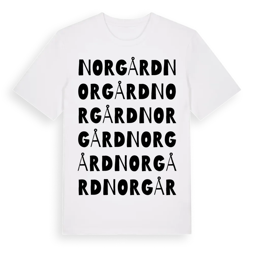 Norgård ordlek t-shirt är inspirerad av Norgård i Västra Götalands län, Sverige. Tröjan är designad för dig som har en speciell koppling till platsen – oavsett om du bor här, har rötterna här eller bara älskar Norgård.