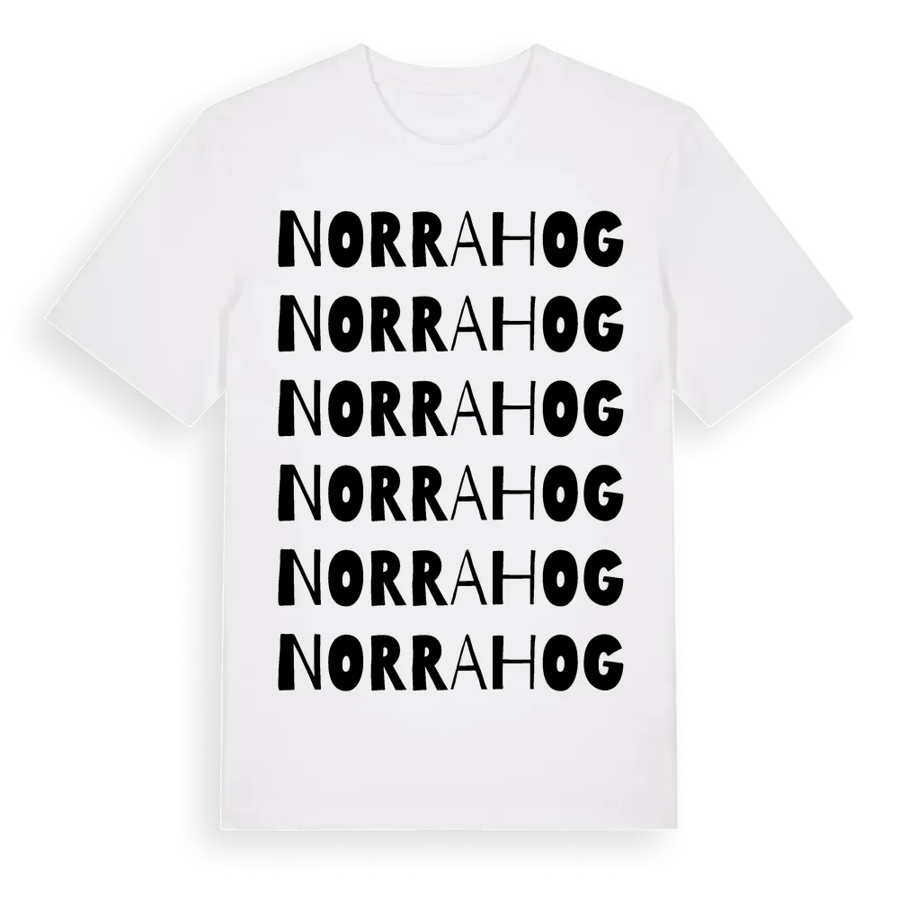 Norra Hog ordlek t-shirt är inspirerad av byn Norra Hog i Västra Götalands län, Sverige. Tröjan är designad för dig som har en speciell koppling till platsen – oavsett om du bor här, har rötterna här eller bara älskar Norra Hog.