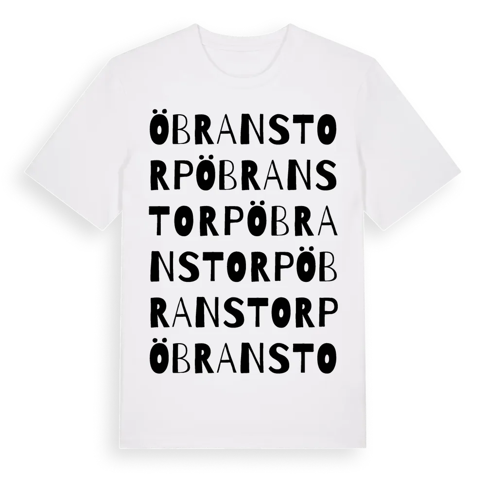 Öbranstorp ordlek t-shirt är inspirerad av Öbranstorp i Västra Götalands län, Sverige. Tröjan är designad för dig som har en speciell koppling till platsen – oavsett om du bor här, har rötterna här eller bara älskar Öbranstorp.