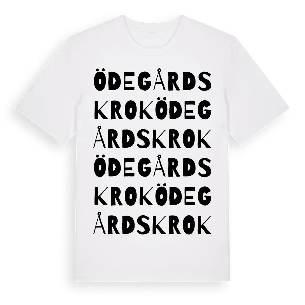 Ödegårdskrok ordlek t-shirt är inspirerad av Ödegårdskrok i Västra Götalands län, Sverige. Tröjan är designad för dig som har en speciell koppling till platsen – oavsett om du bor här, har rötterna här eller bara älskar Ödegårdskrok.