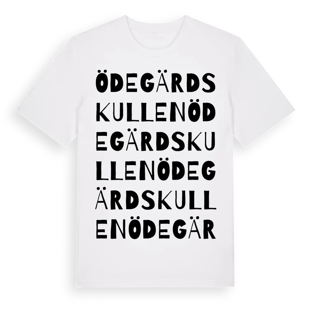 Ödegärdskullen ordlek t-shirt är inspirerad av Ödegärdskullen i Västra Götalands län, Sverige. Tröjan är designad för dig som har en speciell koppling till platsen – oavsett om du bor här, har rötterna här eller bara älskar Ödegärdskullen.