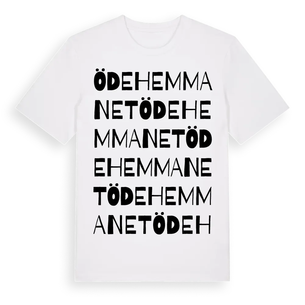 En ordlek byggd på Ödehemmanets namn. Subtilt och klurig – ett motiv som bara de som verkligen känner platsen fullt ut förstår. Premium bomull, unisex – från Ödehemmanet i Västra Götalands län.