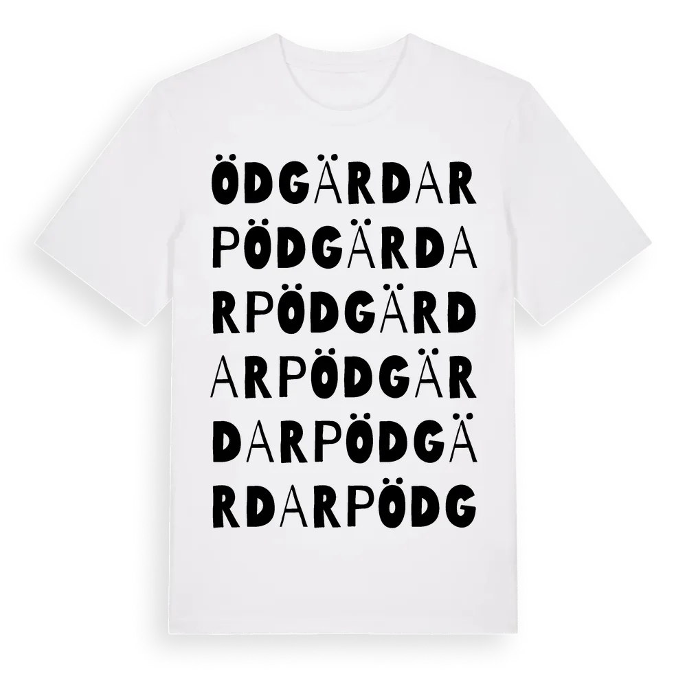 Ödgärdarp ordlek t-shirt är inspirerad av Ödgärdarp i Västra Götalands län, Sverige. Tröjan är designad för dig som har en speciell koppling till platsen – oavsett om du bor här, har rötterna här eller bara älskar Ödgärdarp.