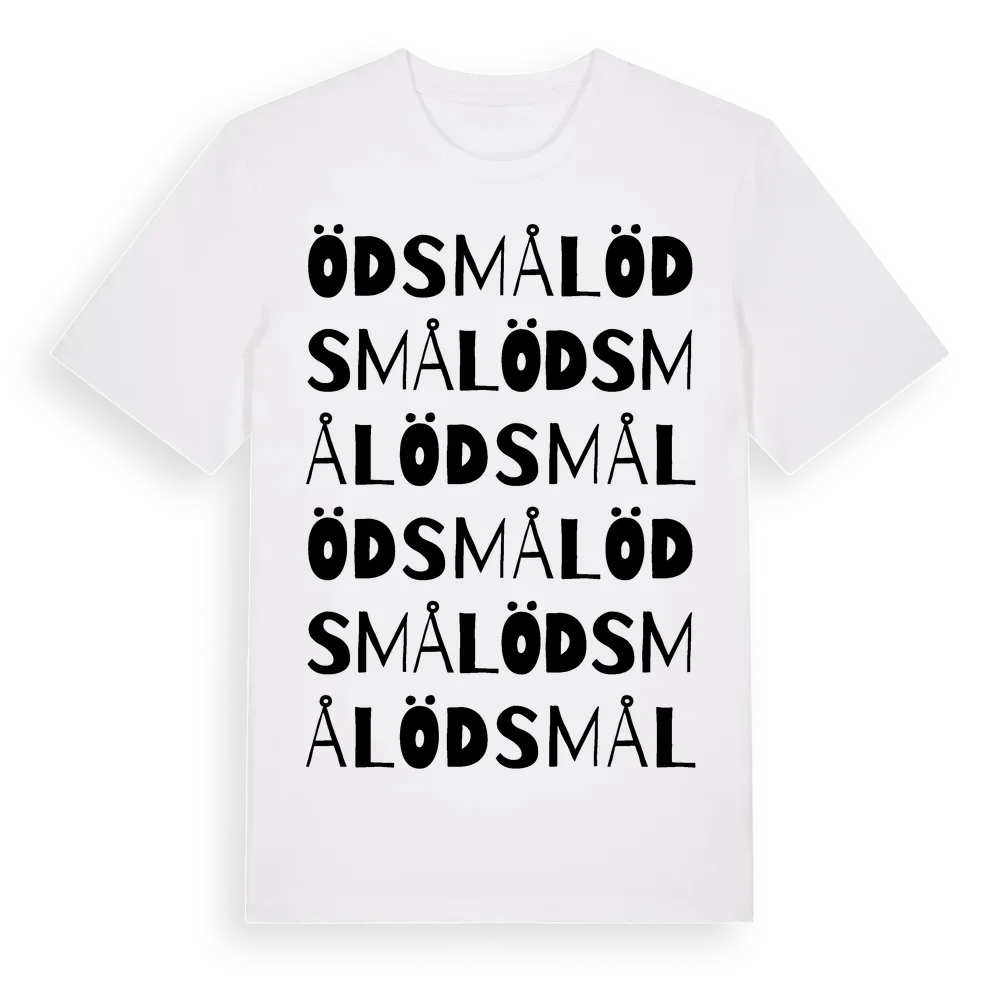 En ordlek byggd på Ödsmåls namn. Subtilt och klurig – ett motiv som bara de som verkligen känner platsen fullt ut förstår. Premium bomull, unisex – från Ödsmål i Västra Götalands län.