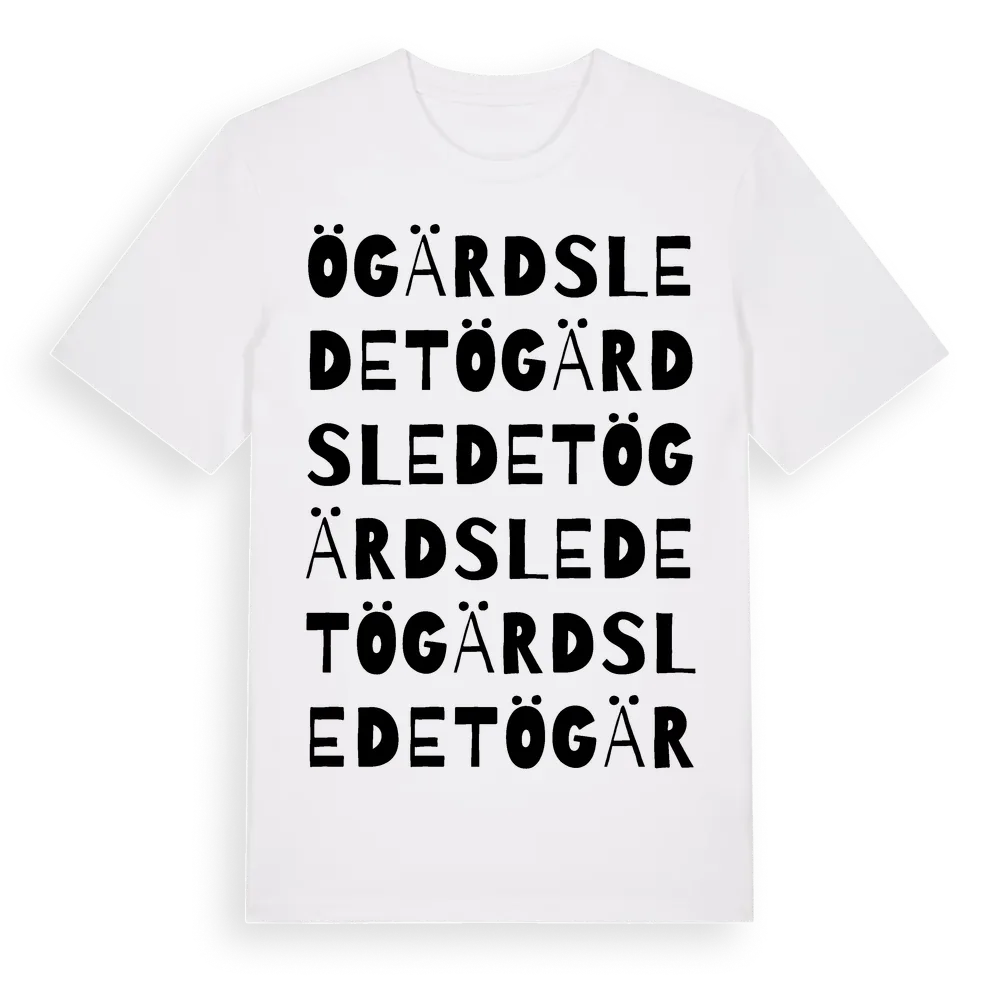 Ögärdsledet ordlek t-shirt är inspirerad av Ögärdsledet i Västra Götalands län, Sverige. Tröjan är designad för dig som har en speciell koppling till platsen – oavsett om du bor här, har rötterna här eller bara älskar Ögärdsledet.